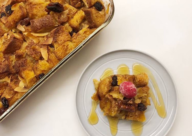 - Campur cairan susu dalam adonan telur dengan cara tuang sedikit. Tuang ke loyang roti tawar, pastikan roti terendam semua. Beri topping sesuai selera.